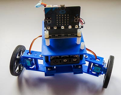 BotはRobotの略称です。講師が部品やパーツを購入して3Dプリンタを使って手作りし、 学ぶべき機能を組み込んでいます。Botのモータやセンサーをコントロールすることでプログラミングを学習していきます。